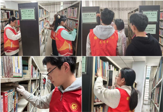活动伊始,志愿者们早早来到图书馆,图书馆老师耐心地跟志愿者讲解图书的摆放原则。随后,负责同学根据老师的要求,确定了志愿者们的分组和工作内容,在明确相关注意事项后,志愿者们分别进入工作区域,各司其职,有的志愿者用书立整理杂乱的书,将书籍分类摆放好,让读者能更准确快速的找到自己想要的书籍;有的志愿者擦拭图书架上面的灰尘,创造干净清爽的阅读环境。经过一个多小时的辛勤劳动,图书馆书库变得干净整洁,图书也按照索引号分类次序摆放整齐,有效的节约了图书馆的空间资源和同学们查阅书籍的时间。
